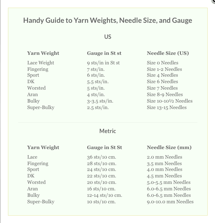 Remind yourself about yarn weights, needle sizes, and gauge with our handy guides..